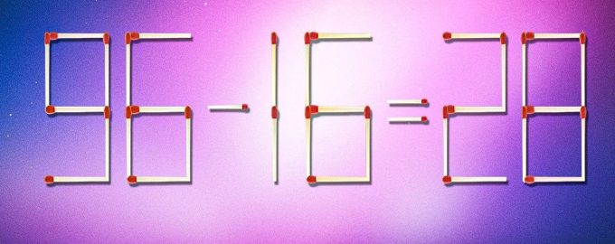 Έτσι, παρακάτω θα δείτε την εικόνα, όπου τα σπίρτα είναι τοποθετημένα με την ισότητα 96-16=28. Αλλά είναι προφανές ότι από μαθηματική άποψη κάτι δεν πάει καλά.