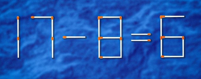 Μπροστά σας βρίσκεται μια λανθασμένη μαθηματική ισότητα 17 – 8 = 6, η οποία αποτελείται από 21 σπίρτα. Η πρόκληση είναι να μετακινήσετε μόνο ένα σπίρτο για να κάνετε το παράδειγμα λογικά σωστό. Οι συνθήκες φαίνονται ελάχιστες, αλλά αυτό είναι που δυσκολεύει την εύρεση της απάντησης.
