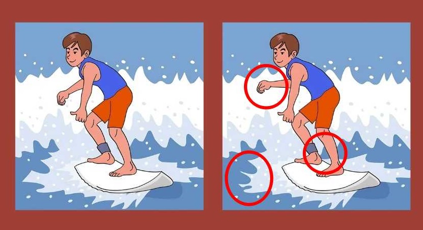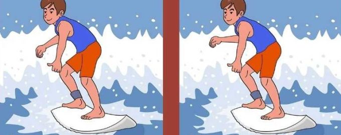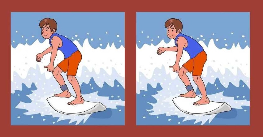 Στην εικόνα βλέπουμε έναν τύπο σέρφερ που κατακτά τα κύματα πάνω σε μια σανίδα του σερφ. Με την πρώτη ματιά, μπορεί να φαίνεται ότι οι τύποι και στις δύο εικόνες είναι ίδιοι, αλλά αν κοιτάξετε προσεκτικά, γίνεται σαφές ότι δεν είναι έτσι – κάπου υπάρχουν μερικές διαφορές που κάνουν τις εικόνες διαφορετικές.