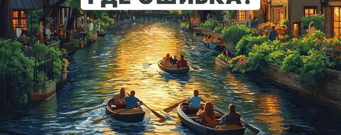 Μπροστά σας υπάρχει μια εικόνα που δείχνει ένα όμορφο τοπίο μιας βραδινής πόλης. Ανάμεσα στα σπίτια τρέχει ένα ποτάμι, στο οποίο επιπλέουν άνθρωποι με βάρκες. Με την πρώτη ματιά η εικόνα φαίνεται φυσιολογική, αλλά στην πραγματικότητα υπάρχει ένα χονδροειδές σφάλμα σε αυτήν.