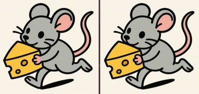 Λοιπόν, είστε έτοιμοι για την επόμενη εργασία; Ρίξτε μια προσεκτική ματιά στις δύο εικόνες του ποντικιού και του τυριού. Μπορεί να φαίνονται ίδιες με την πρώτη ματιά, αλλά υπάρχουν 3 μικρές διαφορές. Πιστεύετε ότι μπορείτε να τις βρείτε όλες σε 31 δευτερόλεπτα; Δοκιμάστε το και δοκιμάστε την οπτική σας οξύτητα!