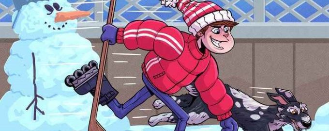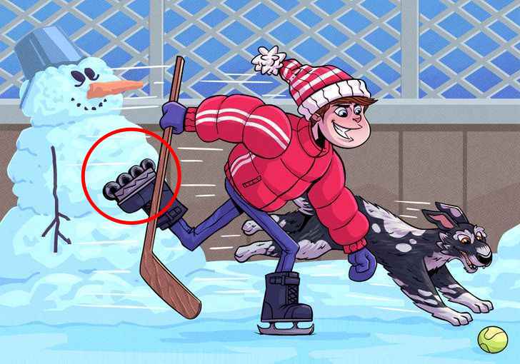 Στην εικόνα βλέπουμε ένα αγόρι να κάνει πατινάζ στον πάγο και έναν σκύλο να τρέχει δίπλα στο αγόρι. Με την πρώτη ματιά μπορεί να φαίνεται ότι δεν υπάρχει λάθος στην εικόνα, αλλά στην πραγματικότητα δεν είναι έτσι. Αν κοιτάξετε προσεκτικά, θα συνειδητοποιήσετε ότι κάποια πράγματα έχουν σχεδιαστεί λάθος.